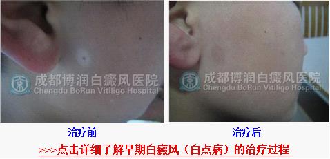 那么白癜风早期的白点怎么治好呢?成都白癜风医学研究院附属博润医院的专家介绍:针对白点的治疗,我院临床严格遵循“分型分诊·多维治疗”白癜风标准诊疗模式,主治专家通过对患者进行“诊前评估体系---全面病因检测---制定个性方案---动态治疗监控---辅助强化治疗---愈后跟踪管理”这一流程,精准找出诱发白点病的一个或多个致病原因,进行科学的分类、分型、分性、分期,结合“GX-B多维白癜风康复工程”30余项诊疗技术(美国第二代308nm准分子激光治疗体系、表皮移植术、蓝氧祛白疗法、体外药离子渗透疗法、311窄谱UVB皮肤病治疗体系等)与百项辅助治疗手段(个性食疗、心理辅导、住院强化治疗等),制定对症施治的白点病治疗方案,最大限度的确保治疗效果。临床疗效显著,极大地满足了患者的康复需求。