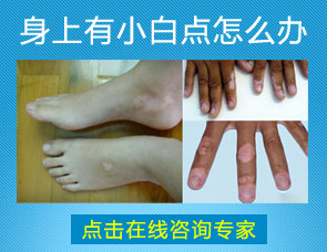 专家指出:身上长白点不一定是白癜风,白点可能是老年性白斑、汗斑、晕痣等,(>>>想要诊断白点,点击咨询在线专家)但是白癜风的早期症状却是有白点逐渐扩展成块状白斑、片状白斑等,临床数据显示,身上长白点的患者约有86%以上均是白癜风,如若不及时接受正规治疗,小白点很有可能蔓延全身,造成泛发型白癜风。那么,要了解身上长的白点是不是白癜风,首先来了解下白癜风的早期症状都有哪些。