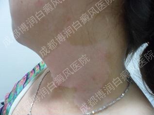 于是,在2012年7月20日这天,祝女士就跟随丈夫来到成都白癜风医学研究院附属博润医院,专家吴占琴热情的接待了她,做了详细的检查,确定这是白癜风,经过专家组的讨论,最终确定为其使用“GX-B多维白癜风康复工程”治疗。经过1个月的治疗,祝女士颈部的白斑已经慢慢消退了,边缘皮肤已经与正常肤色无异,中间的白斑处也显现出小黑点,吴占琴主任告诉她这是黑色素再生的过程,康复在望,这更坚定了祝女士治疗的决心。3个月的治疗很快就过去了,祝女士颈部的白斑已基本消失,搭配个性食疗,康复的很快。现在,祝女士又回复到那个光彩照人,信心十足的创意总监,对生活又充满了信心与期待。
