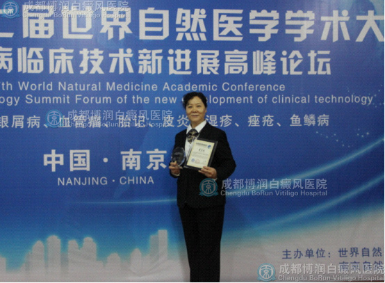 童学娅主任作为中方医学专家的杰出代表,受到国际医学界的广泛赞誉,一举夺得“皮肤健康卫士”称号,据了解,由世界卫生组织、世界自然医学会联合总会颁发的“皮肤健康卫士”奖项,在全国500多名皮肤病专业医生中产生,评选条件严谨苛刻,从工作年限、接诊人数、治愈率、复发率、患者满意度等多方面进行考核,最终入选该奖项的仅为25名,成都白癜风医学研究院附属博润医院的童学娅专家荣获殊荣,在大会上接受与会嘉宾的褒奖。