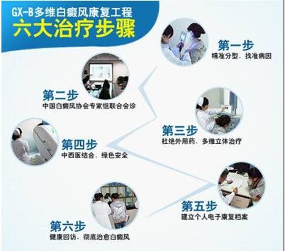 通过明确的六大步骤治疗,患者能够真实主导每一个步骤的康复进程,在选择治疗方法的时候,不再像以往那样被动。GX-B多维白癜风康复工程力求通过剖析治疗过程,让患者切实参与进来,主导自己的健康,勇敢面对白癜风。