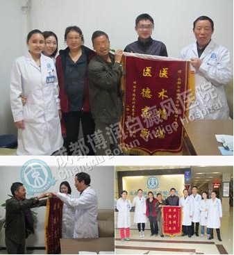 近日,康复患者汪某某及其父母带着锦旗来到成都白癜风医学研究院附属博润医院门诊室,将一幅绣着“医术精湛,医德高尚”的锦旗送给他的主治医生林永祥主任及医护人员,表达感激之情。