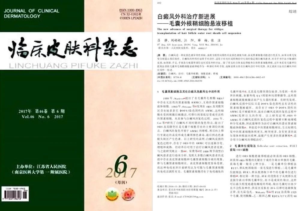 【毛囊外根鞘细胞混悬液移植与表皮细胞悬液移植治疗白癜风疗效】