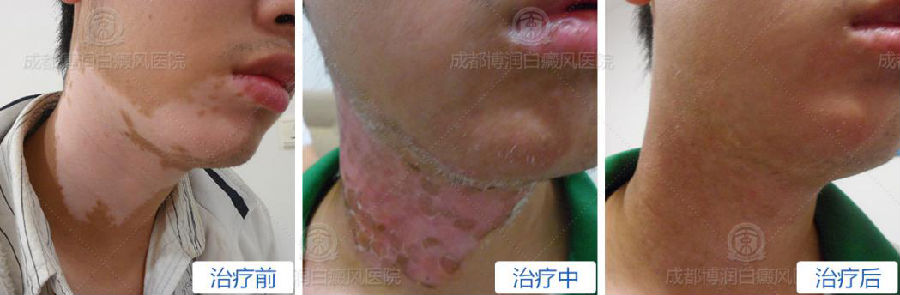 病情诊断:颈部散发型大面积白斑 治疗效果:恢复正常肤色