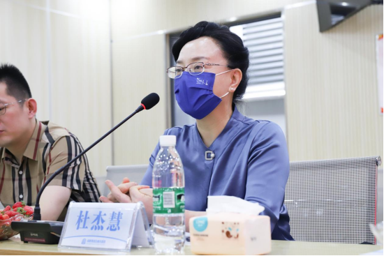 在座谈交流中,院长郝康琳、党支部书记席娇对杜杰慧教授一行的到来表示热烈的欢迎,并由科教部副部长段琛从医院发展历程、学科建设、重点专科建设进展、临床在研项目等方面向杜杰慧教授一行做了详细的汇报。